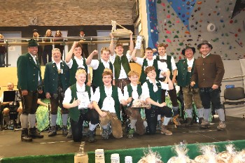 Bei der anschließenden Preisverteilung stieg dann die Spannung, denn es wollten letztlich alle wissen, ob sich die vielen Schnalzerproben in den letzten Wochen gelohnt haben, ist doch die Schnalzersaison jedes Jahr aufs Neue für die alle Beteiligten eine Art eigene Jahreszeit. Michael Mühlbacher, der 2. Jugendvertreter der Schnalzervereinigung Rupertiwinkel und unter anderen einer der Waginger Schnalzertrainer verlas mit Spannung die Platzierungen. Die beste Leistung in der Jugendgruppe konnte die Pass Waging I zeigen, gefolgt von der Pass Laufen I und Waging II. Den 4. Platz belegte hier die Pass Schönram I und den 5. Platz die Pass Fridolfing I. In der Allgemeinen Gruppe konnte die Pass Schönram II den Wettbewerb für sich entscheiden. Den 2. und 3. Platz erzielten die Passen Schönram III und Waging II, gefolgt von Waging III und Grassach-Tittmoning I. Die Freude der Sieger konnte man durch laute Jubelschreie deutlich hören. Jede teilnehmende Schnalzerpass erhielt eine Brotzeit sowie eine Urkunde als Andenken. Die Erstplatzierten durften sich die beliebte Wander-Goaßl für ein Jahr mit nach Hause nehmen. |