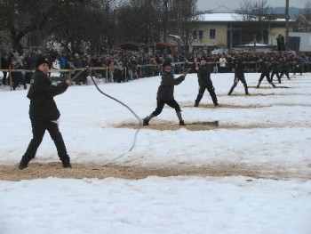 Beim Preisschnalzen „Rund um den Waginger See“ am Sonntag bei der Bergader Sportarena in Waging drehte sich alles rund um das „Aperschnalzen“, ein besonderes Brauchtum, das durch diese Veranstaltung jedes Jahr auf´s Neue gepflegt wird. Seit 1980 wird das Preisschnalzen jedes Jahr in unterschiedlichen Orten rund um den Waginger See durchgeführt. Das „Aperschnalzen“ wird nur im historischen Rupertiwinkel, also zwischen Tittmoning und Piding, sowie im angrenzenden Flachgau und in der Stadt Salzburg von Stephanitag bis zum Faschingsdienstag durchgeführt und soll nach altem Brauch den Winter austreiben und von bösen Mächten bewahren. |
